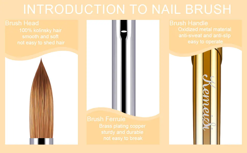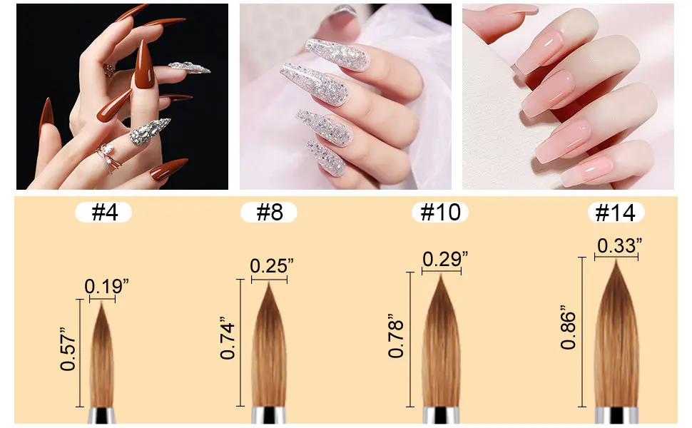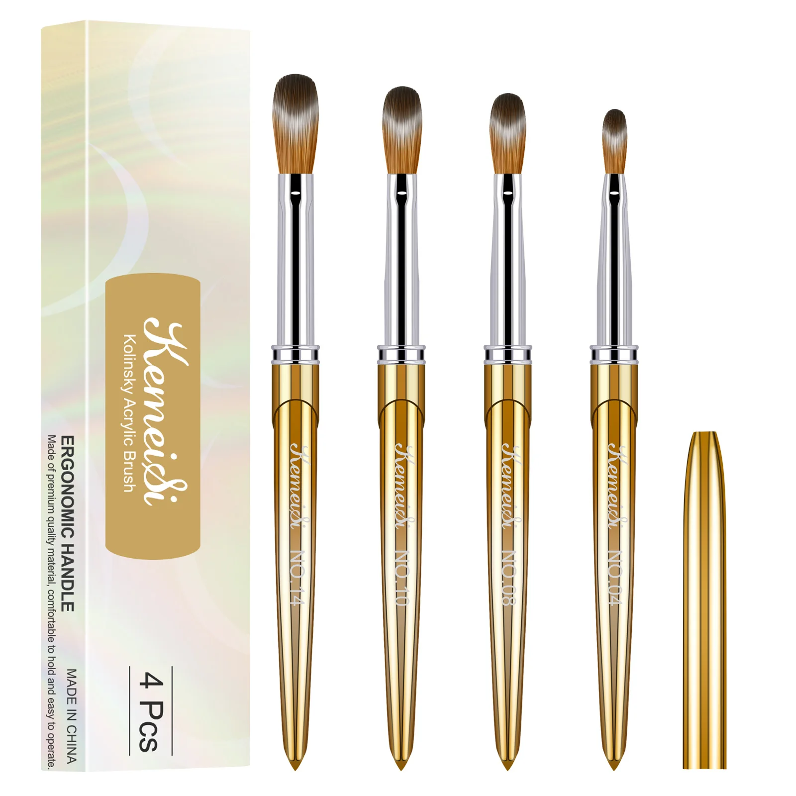 Good Quality Acrylic & Nail Art Kolinsky Brush Gold Metal Handle, Use for Acrylic nails, Nail Extension, Gel Builder, Manicure Brush Drawing Tools.