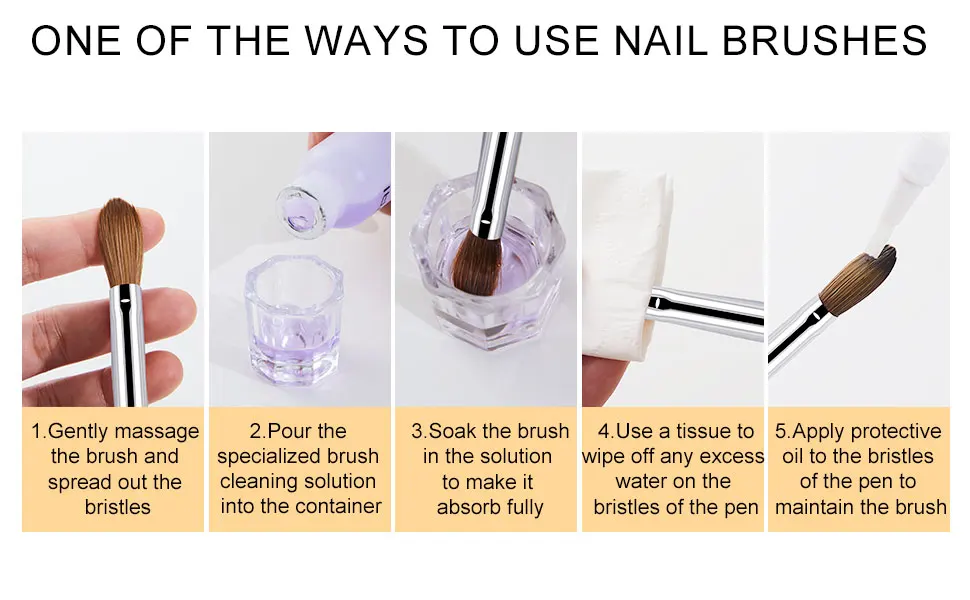 Please wash brush in monomer carefully after finished use, keep it clean and safe for reuse!